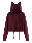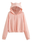 Long Sleeve, Drawstring, Cropped, Cute Cat Ear Pullover Hoodie, Crop Top Sweatshirt