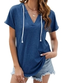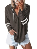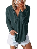 Features: Sexy deep v neck hooded tee, long sleeve t shirt blouse, pullover style with drawstring hoodie, drop shoulder design, irregular curved hem, loose fit style, solid color, sporty quick dry sweatshirt.