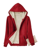 Heavyweight HoodieWomens sherpa lined jacket, slim fit, add wool lining to block the cold wind and bring you warmth.