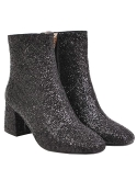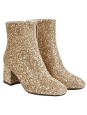 Features of the shoes: comfortable glitter ankle boots chunky heel sparkly booties with side zip. You can wear them for a long time, and high-quality shoes give you the most perfect feeling.