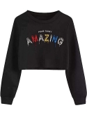 3.Design: girl kids long sleeves pullover Sweatshirt,no hoodie in back,round neck,lightweight, letter print and ribbed cuff top.Cute Sweatshirts Suitable for 4-13years old little girl for spring and autumn wear. Washing tips:Hand/Machine Wash with cold water.