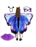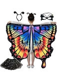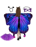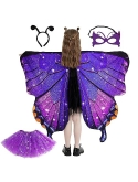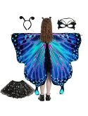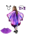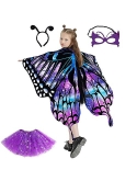 DECENT MATERIAL - Butterfly wings costumes are made of soft polyester fabric, which makes it lightweight, soft to touch, breathable, skin-friendly, anti-wrinkle, good shape retention and non-fading. Antenna headband is made of wire and lightweight polyester fabric and can be worn for a long time without discomfort. Butterfly eye masks are made of good felt material. Tutu skirts are made of lightweight and breathable tulle fabric with elastic band design.
