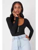 Whatever your plans may be, we know you'll be looking best dressed in the Lulus Everyday Perfection Hot Pink Ribbed Scoop Neck Henley Bodysuit! Soft and comfy ribbed knit forms a scoop neckline framed by long sleeves. A partial, mother-of-pearl button placket accents the front of the figure-hugging bodice that continues down to attached thong bottoms that secure with double snap closures.