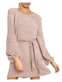 Chenille sweater dress features a crew ribbed neckline, long bishop sleeves formed by elastic cuffs