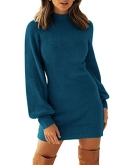 This sweater dress features a turtleneck, bubble long sleeve, solid color, ribbed knit texture at hemline/cuffs, flattering fit that clings to the curves in all the right ways along with mini length.