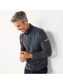 Stretch fabric 1/4 zipper closure 1 zip pocket Long sleeves with thumbholes 44% recycled polyester, 44% polyester, 12% spandex Machine wash Imported Contains recycled polyester Global Recycled Standard Certified