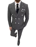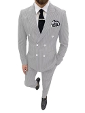 FEATURES----Stripe Suit for Men,2 Piece Double Breasted Suit Men; Customizable and adjustable.Double Breasted jacket,Pinstripe Suit Wedding Suit for Men