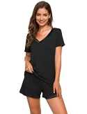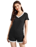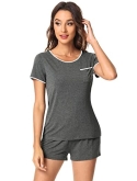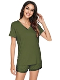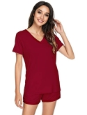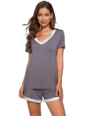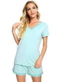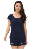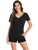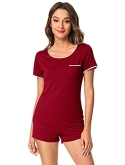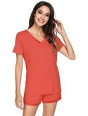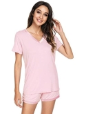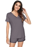 [MOISTURE-WICKING] Enough cool to beat sweats, save you from hot flashes and heat waves. This bamboo fiber material pajama set let your skin breathe all night and helps you sleep more soundly.