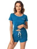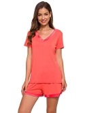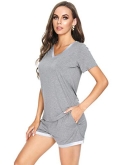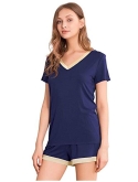 [DESIGN DETAIL]-Customized High Stretch Satin V neckline/ Short sleeves tops/ Boxer shorts with comfy elastic waistband/ No Pockets
