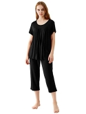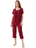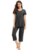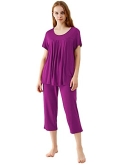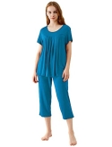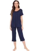Versatile Sleep SetShort-sleeved pajama tops with pants are cool and breathable for all kinds of weather, ideal to wear as pajamas or lounging around the house. The loose cropped pants are perfect for yoga, vacation, Pilates, sleeping, jogging, walking, leisure and relaxing at home.