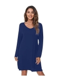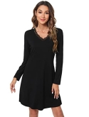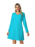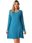 Women's Bamboo Viscose Nightgown Long Sleeve Nightshirt Soft Sleep Dress V-neck Loose Comfy Pajama Sleepwear S-XXL