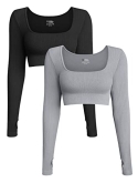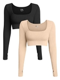 Sexy Ribbed Long Sleeve Square Neckline Crop Tops:Cut with a flattering square neckline,long sleeve with thumb hole,simple in design,non-padded.
