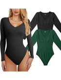 Sexy Ribbed V Neck Long Sleeve Bodysuits, flattering V neckline, long sleeve, simple in design,dont see through, Best womens, ladies and teen girl clothes.