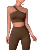 90% Nylon+10% Spandex. One Shoulder Sports Tops (padded bra)+Ribbed Leggings