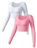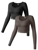 90% Nylon, 10% Spandex, Elastic, soft and comfortable sweetheart v neck long sleeve crop tops.