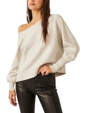 Get a timelessly fashionable look donning the Free People Sublime Pullover. It features a wide scooped neckline and long dropped dolman sleeves. The elasticized hem gives a polished look.