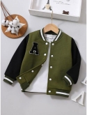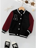 SHEIN Kids Academe Toddler Boys Letter Patched Thermal Varsity Jacket