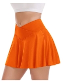 Pleated Athletic Skirt with Built in Shorts---Tennis skirts for women was designed 2-in-1 Skort. Composed with skirt outer and built-in lining shorts inner. Outer flowy pleated style shows super cute and lovely, make you more fashionable during workout. Liner golf skirt with shorts stretchy, breathable and quick dry fabric to keep you cool, tennis skirt with built-in shorts also gives you secure coverage while doing sports.