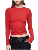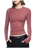 Classic Design: This long sleeve tops features a round neck design and a standard T-shirt length. Its adaptability shines as it effortlessly transitions from a tucked-in inner layer to a stylish crop top when stacked at the waist, making it a must-have piece for those seeking to channel the fall fashion trend.