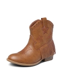 Stylish Design: Give your child a taste of cowboy style by adding these stylish Western boots to their wardrobe. Featuring a soft faux leather upper, star embroidery decoration, and tassel detail around the heel, these girls cowboy boots are both comfortable and fashionable.