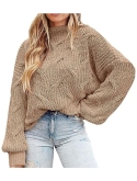 VINTAGE PLAIN SWEATERS: Classic Crew Neck Sweater Is An Indispensable Item For Your Fall Wardrobe. The Chic Twist Cable Knit Makes This Slouchy Sweater More Interesting And Flattering. The Drop Shoulder And Oversized Design Give This Sweater A Trendy And Youthful Appeal