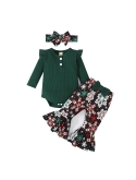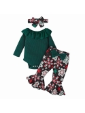 Feature: Newborn girl winter clothes,baby romper: Long sleeves, crew neck, ribbed knit,snap closure for easy diaper changing.Flare Pants: Elastic waistband, bow front, heart print.Comes with a headband.