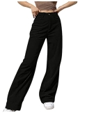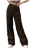 Casual women wide leg high rise corduroy pure color pocketed stem-pipe streetwear casual pants