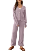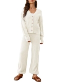 Features: Casual two pieces outfits sweater sets for women, sweater lounge sets for women is made of soft cozy knit fabrication, combine loose button down cardigan sweaters and knit long pants, easy to create a trendy casual matching sets, essential sweater fall outfits for women.