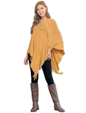 Classic Soft Knit Poncho Shawl Wrap - Basic Warm Pullover Fringe Tassel Sweater Chunky Crochet, Plain V-Neck, Turtleneck