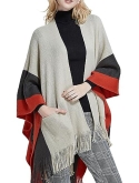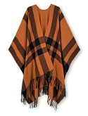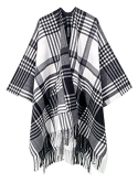 Relaxed poncho crafted with a tri-color buffalo plaid print and fringed edges. The classic must-have style in chilly days.