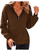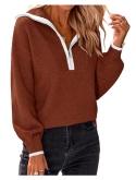 FEATURES: S=US4-6, M=US8-10, L=US12-14, XL=US16 / Half Zip Pullover Women / Fall Knitted Sweaters / V Neck / 1/2 Zipper / Long Sleeve / Rib-Knit Cuffs And Hem / Contrasting Color Details On The Collar And Cuffs / Solid Color