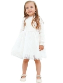 Feature:Little girl's tulle dress in flowing tulle, [casual style],long sleeves, classic crew neck, soft lining, ribbed knit .Girls' princess dress makes your little sweetie charming and pretty