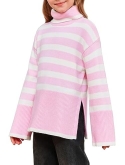 Stylish Design: The loose fit knit jumper tops featuring turtleneck, which protects your neck well in chilly days. Trendy long flare sleeve, drop shoulder, side split and high low hem design could brings a unique but fashion look. Classic striped details enhance cute feelings that makes your girls stand out