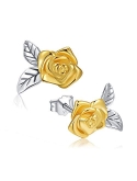 SIZE & MATERIAL Rose size0.49" x 0.39". *** Hypoallergenic gold plated sterling silver, nickel-free and lead-free, safe for everyone even for those with sensitive skin.