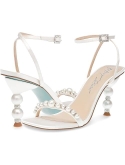 Step into the refined elegance wearing the Blue by Betsey Johnson Jacy Heeled Sandals. These heels feature a stunning pearl-embellished toe strap that adds a touch of sophistication to your look. The open square toe design gives them a contemporary feel, while the unique stacked ball heels set them apart from the ordinary.