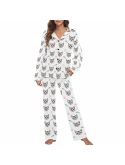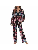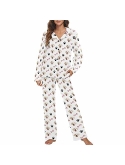 Material: 22.93 Oz. Contructed with 100% soft polyester; Top features notch collar, long sleeves and front button closure; Trousers feature elastic waist and two sided pockets