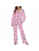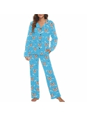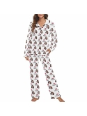 Material: 22.93 Oz. Contructed with 100% soft polyester; Top features notch collar, long sleeves and front button closure; Trousers feature elastic waist and two sided pockets