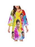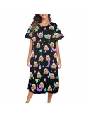 Custom Face Pajama Dress - It is customized by your photos,which will make you happy and belonging.Whenever she puts on this set of Nightwear with a customized face,she can remember the one who gave the gift, as if you accompany him.