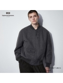 New Outerwear from UNIQLO, Devised with Engineered Garments.- Warm, lightweight, Heat of Absorption padding jointly developed by UNIQLO and Toray. - Lightweight, soft, and non-itchy fabric with a cozy feel. - Voluminous size, based on an authentic flight jacket. - Features an exclusive Engineered Garments woven name tag and logo buttons. - Signature Engineered Garments details include dot buttons on the front and patch pockets. - Ribbed sleeves and hem with a distinctive knit construction. - Onion quilt lining. - Short length can be styled with different inner layers. - For a different look, fasten the buttons instead of the slide fastener.