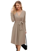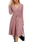ELEGANT WEDDING GUEST DRESSES FOR WOMEN DINNTER DESIGN:this dresses for women 2023 Trendy Gifts is super elegant and feminine, ribbed knit / women clothing / sweater dress / V Neck dress / long sleeve dresses /womens dresses fall 2023 / belted dress / spring midi dress / semi formal dresses/ tie waist dresses /womens fashion / Birthday Gifts /Christmas Dress for Women 2023 /Classy Casual Outfits for Women, cozy and extra stretchy