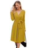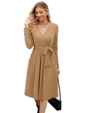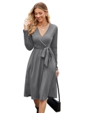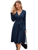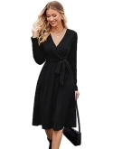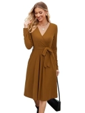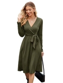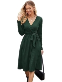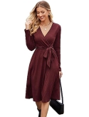 Long Sleeve Dresses for Women Work Casual-The sweater dress for women show off your female curve figure with its ribbed knit construction, adding a touch of sexy and elegance, fitted style, easily put on or take off, and detachable belt combined with midi knee length, highlights the feminine temperaments and looms your beauty legs