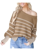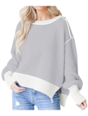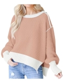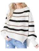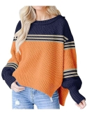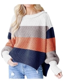 Design - crew neck,batwing long sleeve,drop shoulder,ribbed cuffs and hem,solid color,stripes,color block,side split,oversized style,loose fit,cute cozy warm knitwear