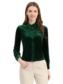 Velvet Fabric, Office Blouse, Full Placket, Point Collar, Solid Color, Full Sleeves Top