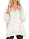 Features: This Casual Sweatshirts Designed with a button-down V neck and long sleeves, this sweatshirt offers a comfortable and chic look. The Henley style adds a touch of sophistication, making it suitable for both casual and dressier occasions. The solid patchwork design adds a unique and trendy element, making this top stand out from the rest.