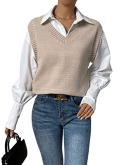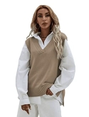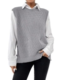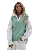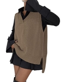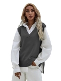 Regular fit and lightweight pullover sweater vest, V neck and split design, casual and trendy