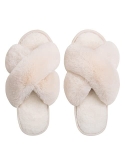 PREMUIM STYLE: Stylish cross band; Quick and easy slip-on design. The peep toe is slide style as it keeps your feet warm and protected but they won't get too hot. Luxury faux rabbit fur makes these house slippers the ultimate indoor choice.