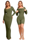 【8 IN 1 DESIGN DETAILS】The non-compressive butt design creates a peach butt. Mesh lining is designed to sculpt the thigh contour. Adjustable straps for a truly custom fit. Detachable cups provide you with versatile wearing methods. The abdominal double layer design can smooth your abdomen. Outer fitted dress is a good way to highlight your fashion taste. Shaping bodysuit underneath can create a perfect figure.