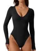 Features: the sexy v neck bodysuit features with thong-cut bottom,long sleeve,snap closure,thick,soft touching,can be styled perfectly with jeans,trousers,denim shorts,skirts.