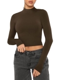 ?This long sleeve fitted cropped top is not too short,great to wear on its own to going out or as a layering piece.Fits like a glove,basic but sexy.