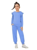 Features: Girls Sweatsuits features a rounded neckline, Shoulder with fashionable ruffles. Designed elastic waistband easy on and off, side pockets easy carrying small items.